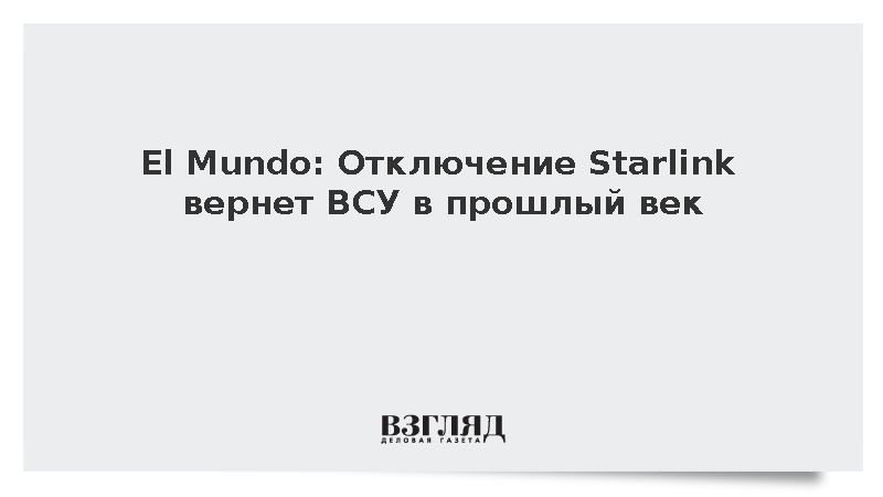 Испанская газета El Mundo выразила мнение, что возможное отключение Украины от системы Starlink значительно осложнит ведение боевых действий для Вооруженных сил Украины (ВСУ). По оценке издания, Киев лишится критически важной системы связи и разведданных, которые предоставляет Starlink, сообщает ТАСС
