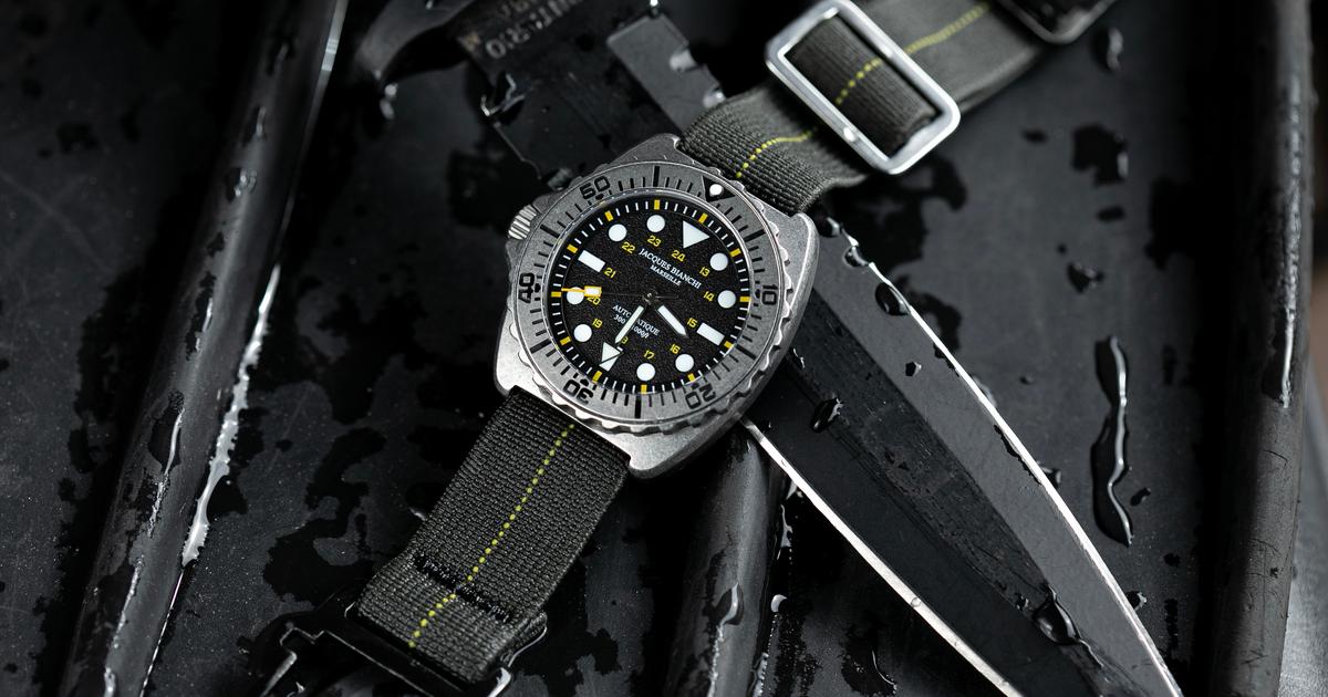 Pourquoi faire les choses à moitié quand il s’agit de développer une montre de plongée ? Pour sa nouvelle JB300 Profonde Titane, une édition limitée à 150 pièces numérotées, Jacques Bianchi Marseille a collaboré avec un ancien plongeur de l’U.S. Navy, Brock Stevens. Pour lui, qu’est-ce qu’une montre de plongée « utile et sans compromis » ? Montre-outil radicale et lisible, dotée d’une lunette unidirectionnelle crantée, elle inaugure une nouvelle génération de JB300 de haute technicité : boîtier en titane grade 5 41,5 mm de diamètre au fini « stonewashed », dual-lume différencié pour la plongée.