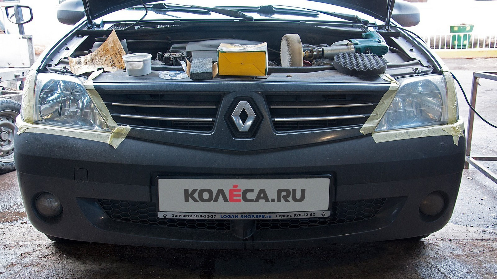 Ну и не забываем, что бесконтактный способ полировки тоже опасен для кузова, поэтому фары лучше снять или хотя бы закрыть железо малярным скотчем.