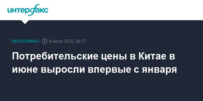 Потребительские цены (индекс CPI) в Китае в июне увеличились на 0,1% в годовом выражении, говорится в отчете Государственного статистического управления (ГСУ).Рост был отмечен впервые с января.