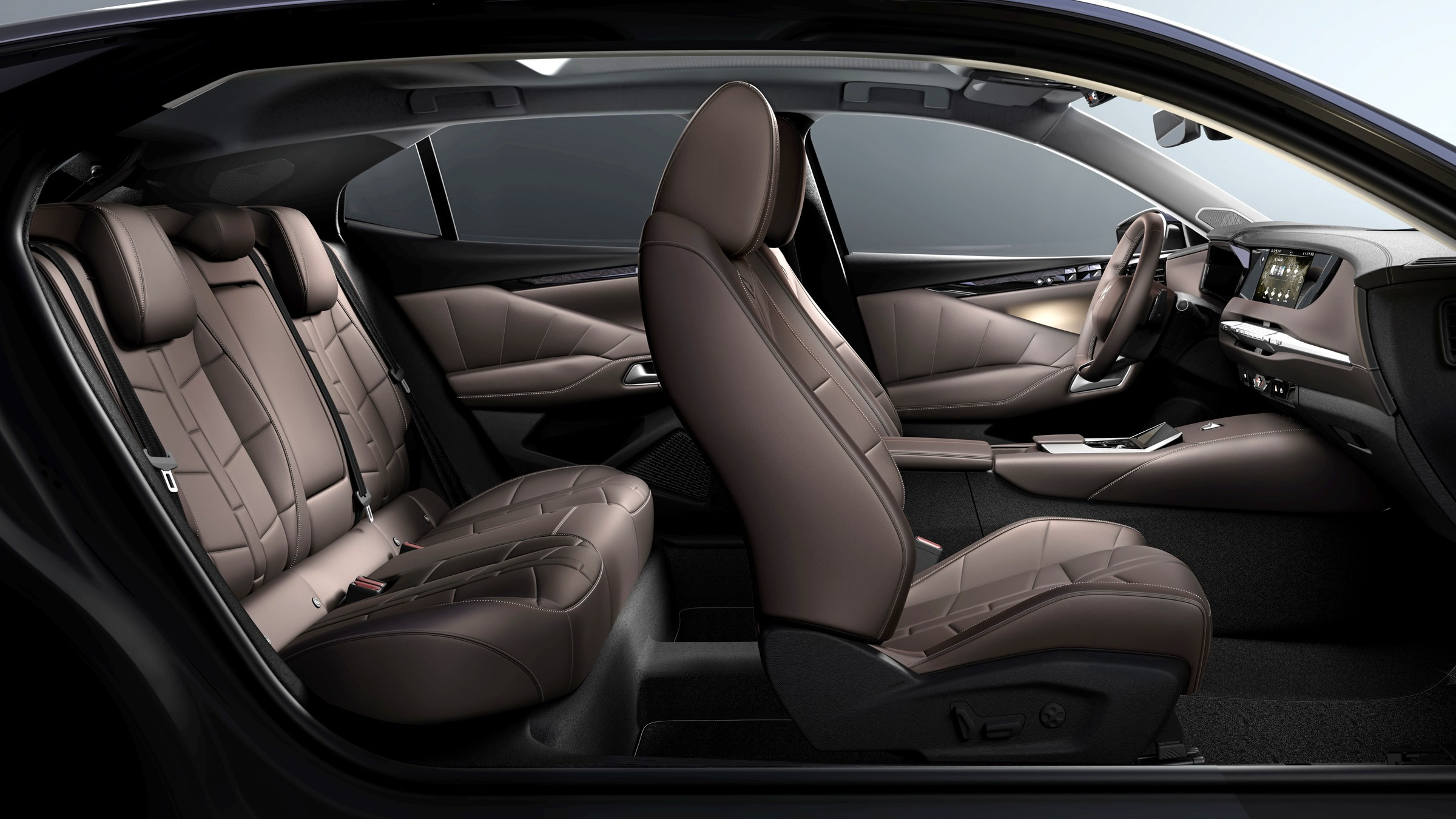 Интерьер, по сути, прежний, в нём лишь слегка обновлены отделочные материалы, а в мультимедийную систему с 10-дюймовым сенсорным экраном внедрён вездесущий нейросетевой искусственный интеллект ChatGPT. Приборный 10,25-дюймовый экран получил более наглядную графику, настраивать его стало проще. Топовая 690-ваттная аудиосистема Focal насчитывает 14 динамиков.