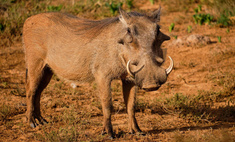 Cамая известная из африканских диких свиней выглядит настоящим пугалом на фоне своих сородичей. Кажется, что Природа нахулиганила, работая над портретом бородавочника, пририсовав ему длинную гриву по всему хребту — от лба до крупа, пышные бакенбарды, кисточку на хвосте, расширяющуюся к пятачку морду, огромные, загнутые вперед и вверх на манер гусарских усов клыки и в довершение — несколько пар крупных, симметрично расположенных наростов-бородавок, собственно, из-за которых животное и получило такое название.