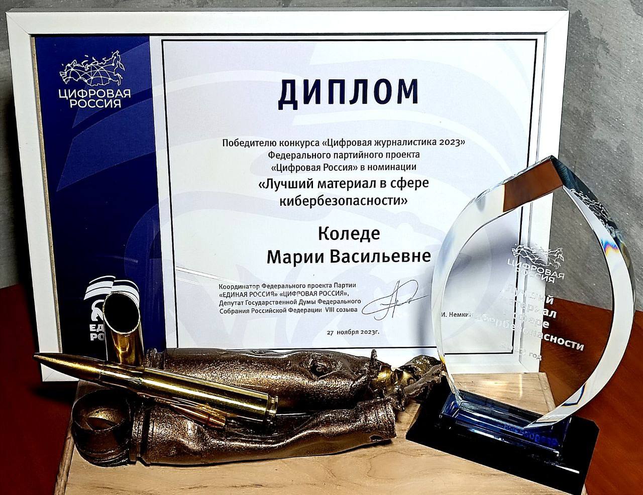 Сегодня в Москве, в ЦИКе партии «Единая Россия» состоялось торжественное награждение победителей премии «Цифровая журналистика». Цель конкурса – повышение осведомлённости граждан в сферах цифровой трансформации и информационной безопасности.