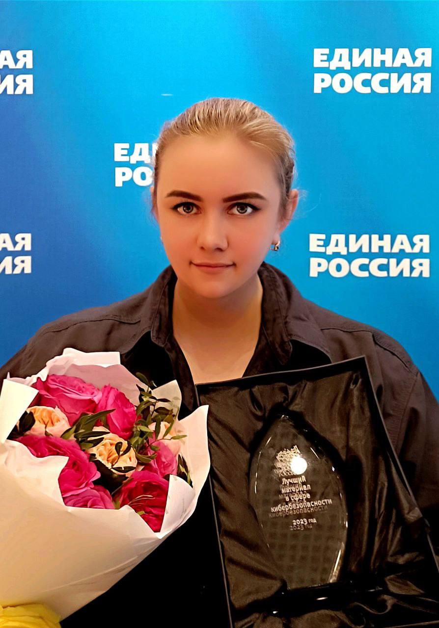 Высокую награду журналистке вручил Антон Немкин, член Комитета Государственной Думы по информационной политике, информационным технологиям и связи, федеральный координатор партийного проекта «Цифровая Россия»