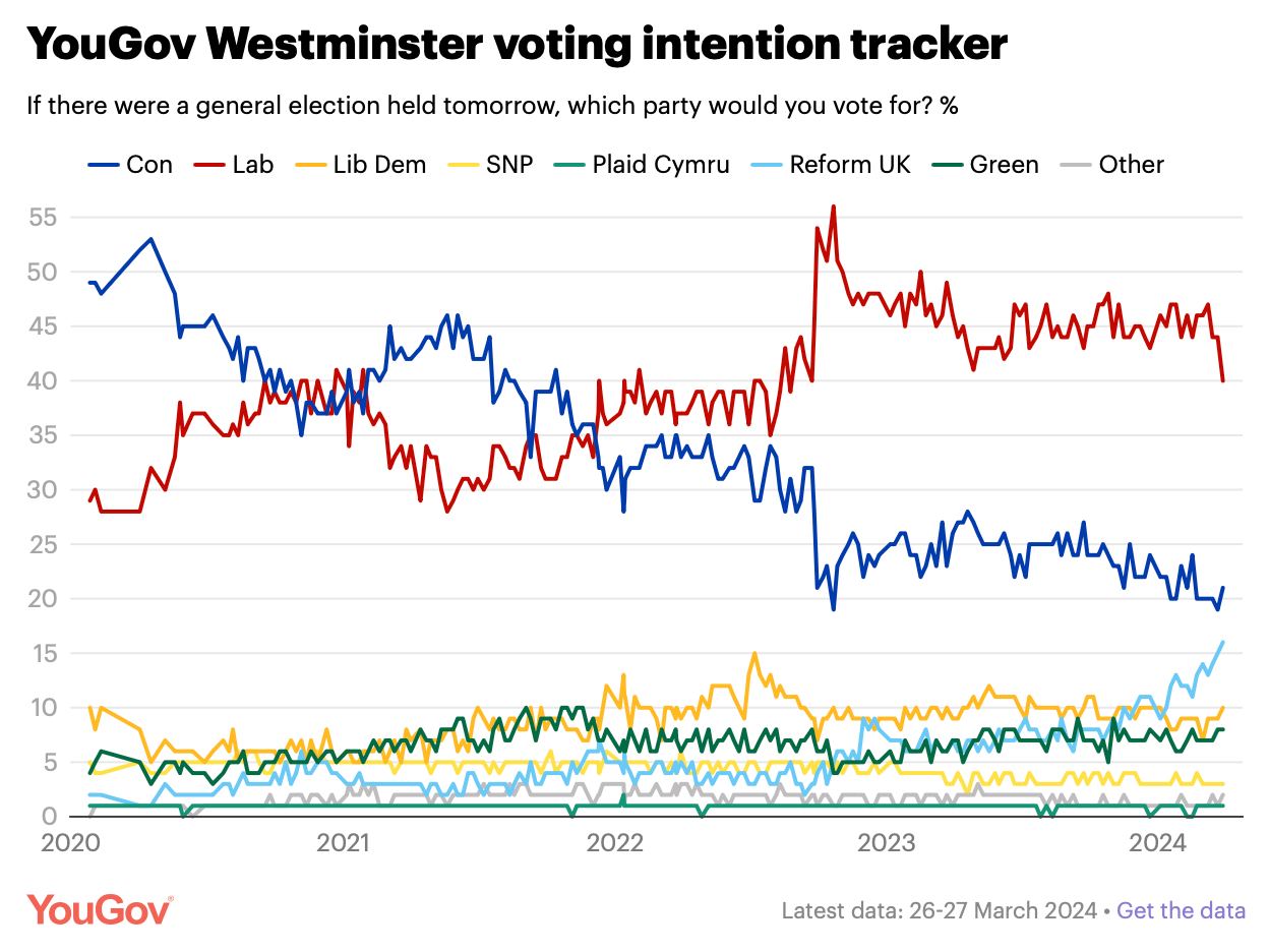 Тори запаниковали. Британские консерваторы отчаянно пытаются остановить взлёт популярности Партии Реформ, несистемного правого проекта Найджела Фараджа. В конце марта рейтинг Партии Реформ уже достиг 16% - против 21% у Тори. Ещё чуть-чуть, и они будут идти наравне.