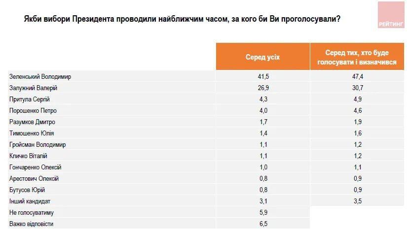 По опросам, Зеленский (если жена разрешит) в первом туре президентских выборов может набрать 47,4%. Залужный – 30,7.