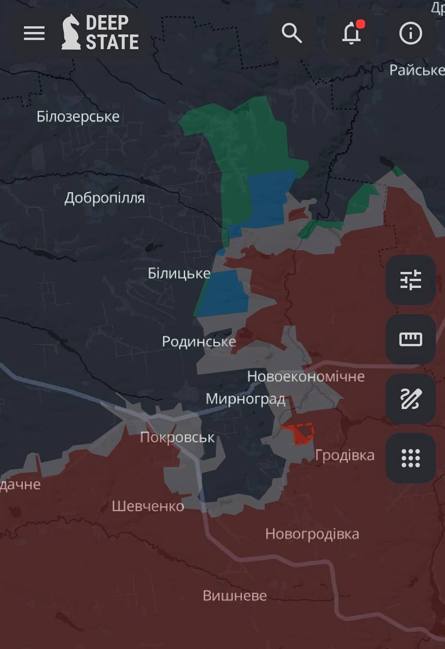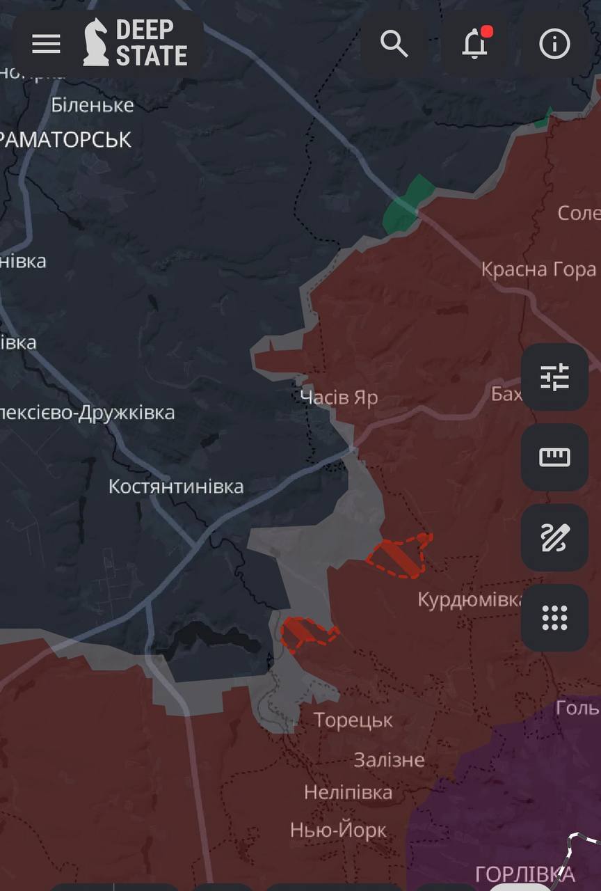 По информации проекта DeepState, российские силы добились новых тактических успехов на нескольких участках фронта. Отмечается продвижение в районах Белой Горы и Плещеевки возле Константиновки, а также в населённом пункте Козацкое неподалёку от Мирнограда.