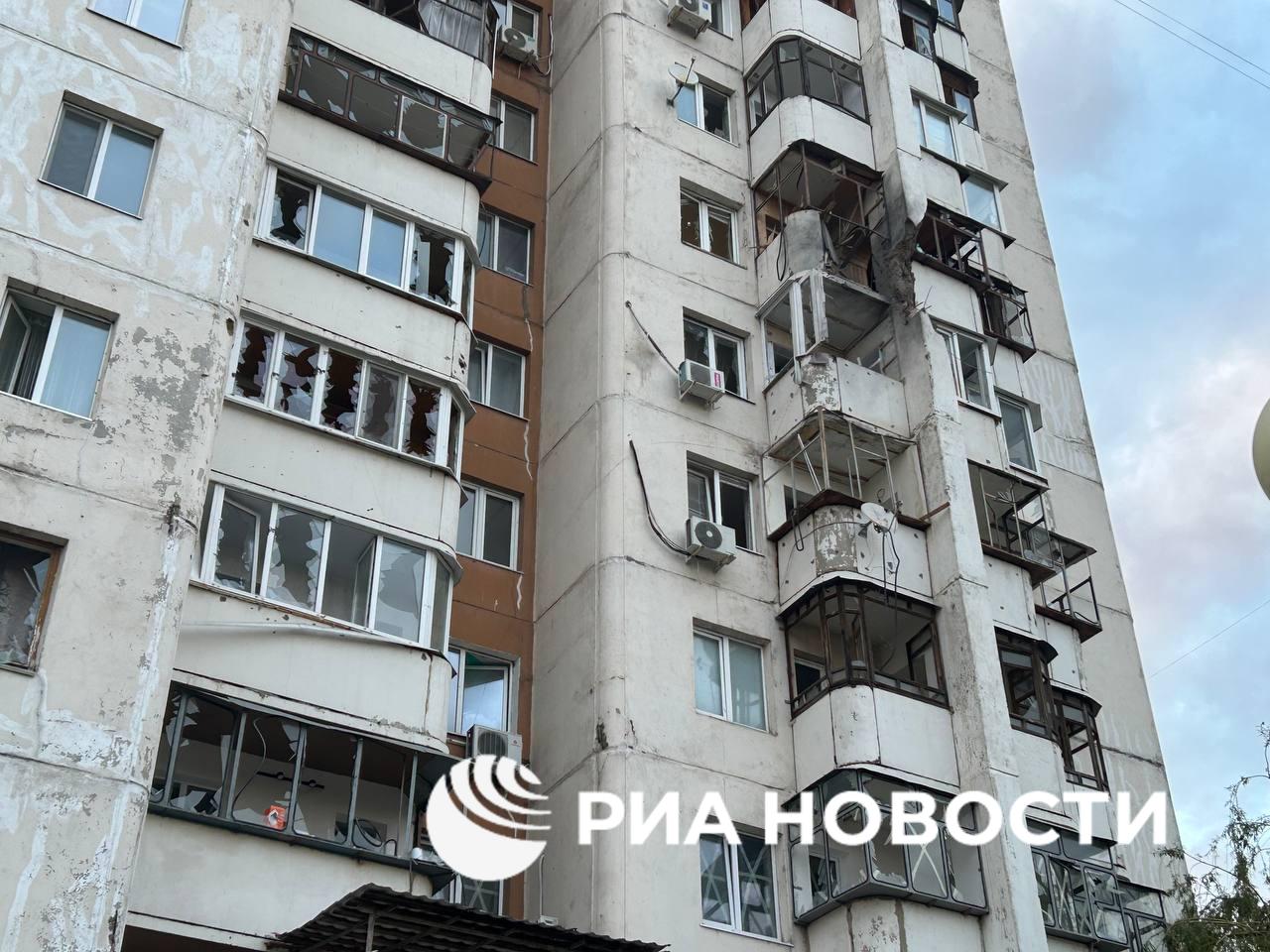 В Белгороде различные повреждения в результате обстрела ВСУ получили 49 квартир в 22 домах, 4 коммерческих, 4 социально значимых объекта - городская больница №2, детская областная клиническая больница, Центр художественной гимнастики, спортивной акробатики и прыжков на батуте «Сирень» и школа, сообщил Гладков. Фото корреспондента РИА Новости.