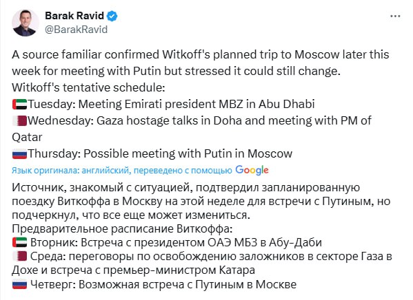 Спецпосланник президента США Стив Уиткофф может встретиться с Владимиром Путиным уже в ближайший четверг
