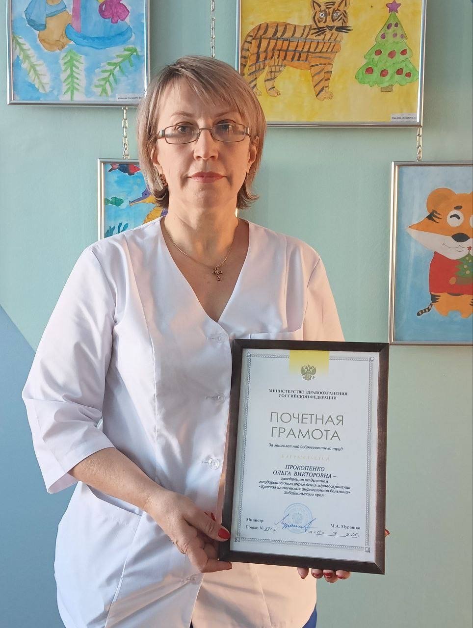 ChitaMedia, 15 января. Заведующих из краевой клинической инфекционной больницы (ККИБ) в Чите наградили почетными грамотами от главы Минздрава России Михаила Мурашко. Об этом сообщила руководитель краевого министерства здравоохранения Оксана Немакина в своём телеграм-канале (18+).