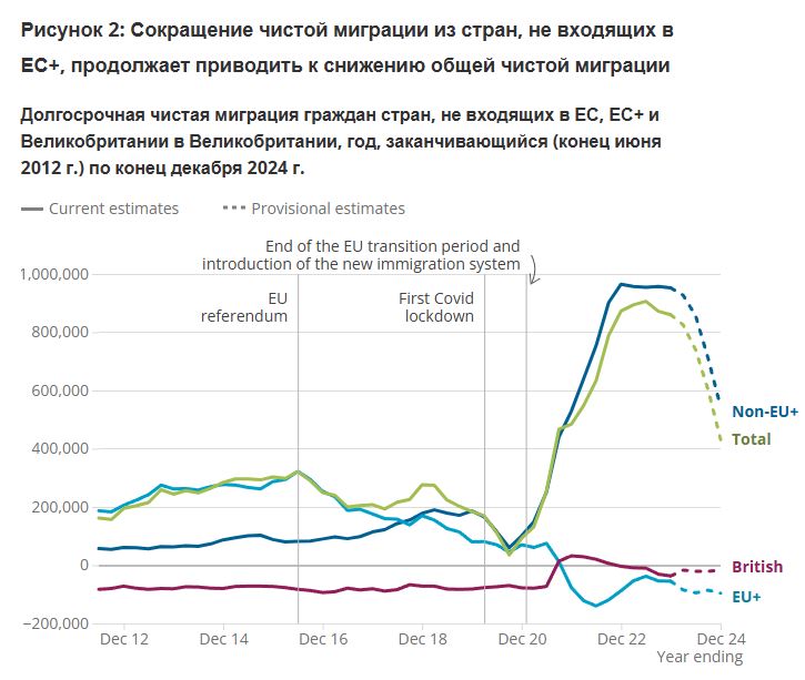 (к предыдущему посту) Посмотрел данные Office for National Statistics — это Британское ведомство национальной статистики, независимый орган, отвечающий за сбор и публикацию данных по населению, миграции, экономике и обществу. По данным за 2024 год, из Великобритании эмигрировали 517 тысяч человек. Из них около 77 тысяч — британские граждане, то есть именно англичане (рисунок 7) На графиках к посту из этого статистического бюллетеня, хорошо видно, как меняется динамика эмиграции. И в этом контексте удивляет, что аренда жилья в Лондоне остаётся одной из самых высоких в мире. На мой взгляд, с учётом всех очевидных проблем британской столицы (и страны в целом) город объективно должен занимать место значительно ниже Москвы. Даже если брать по минимуму такие базовые критерии, как безопасность от уличных преступлений или банальный доступ к отоплению. Для понимания масштаба — The Guardian пару лет назад публиковала материал, где приводились данные парламентариев: число смертей от переохлаждения в Великобритании выросло почти вдвое. Только за одну зиму количество таких трагедий увеличилось примерно на 50% из-за того, что более миллиона уязвимых семей не получили государственную поддержку для оплаты счетов за электроэнергию. Иными словами, люди там реально умирают в собственных домах из-за холода. В Москве подобное даже в самых неблагополучных семьях представить невозможно.