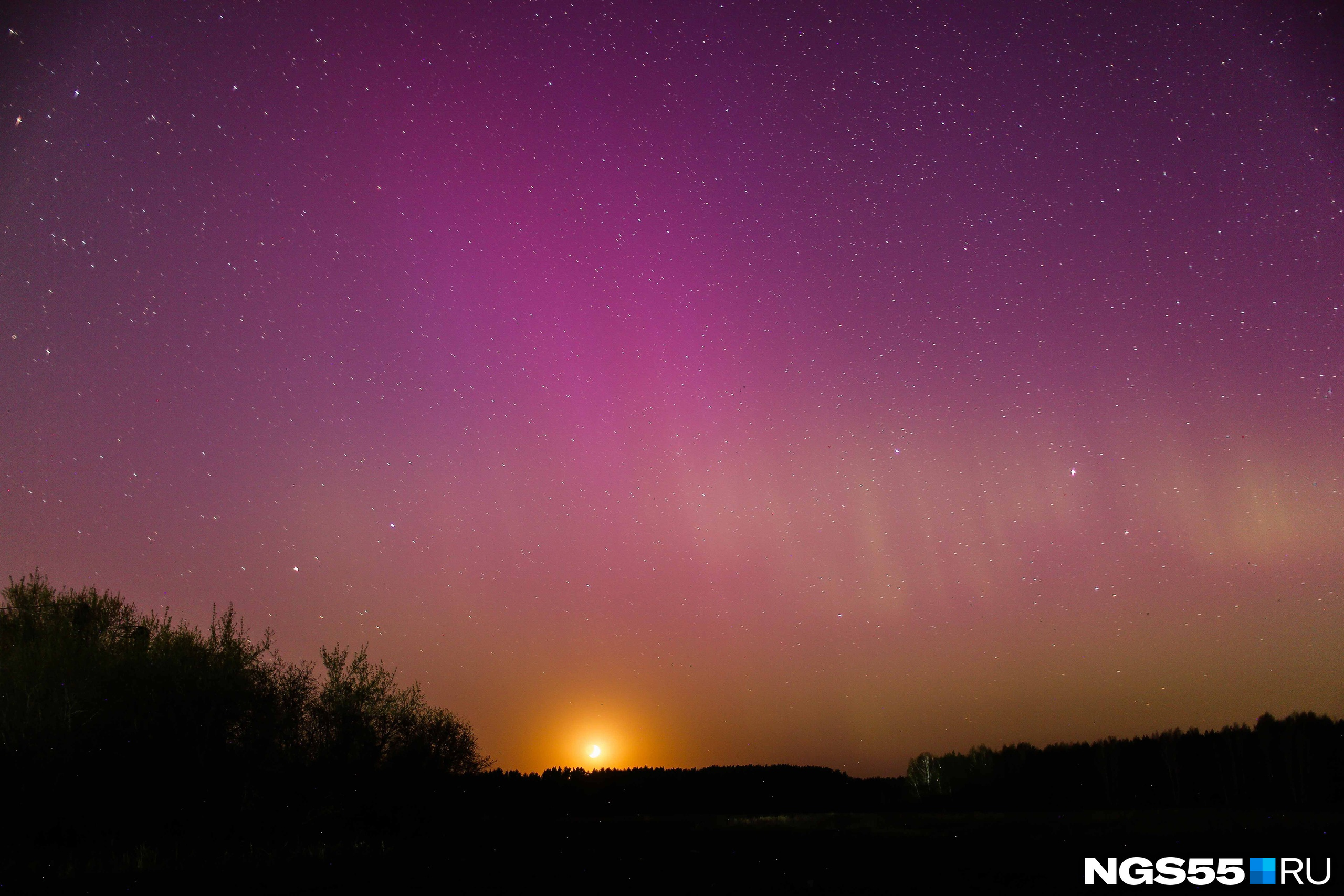В минувшую ночь, с 11 на 12 мая, омичи снова могли наблюдать за полярным сиянием. Горожане видели его в Нефтяниках, Амуре и в районе левого берега. Также красивое явление было видно и за городом — наш фотограф Евгений Софийчук запечатлел сияние в Подгородке. Правда, на этот раз, по словам наблюдателей, северное сияние было совсем сложно разглядеть невооруженным глазом: многие замечали цветные всполохи только при помощи камеры мобильного телефона, выставленного на длинную выдержку. Омичи также отмечают, что основной всплеск пришелся на 23:00–23:30 часов.