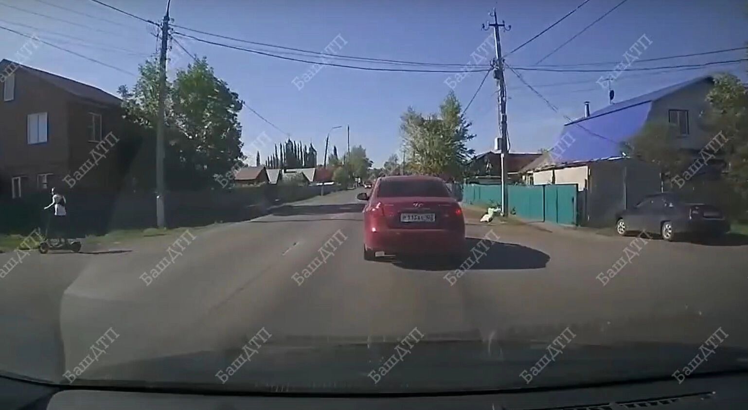 В момент движения героев ролика по улице ехал красный «Солярис». Пара детей едва не попала под его колёса.