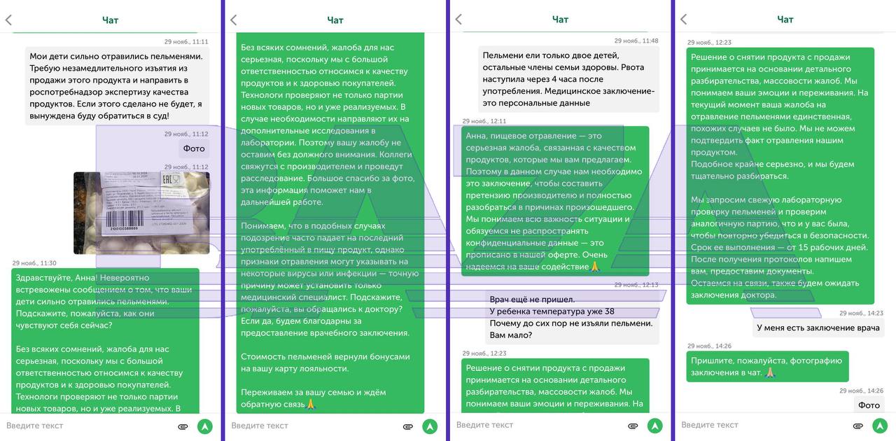 Мама детишек написала в службу поддержки магазина, описала ситуацию и потребовала возместить стоимость лечения. На линии женщине дежурно посочувствовали, скинули бонусами стоимость пельменей, уточнили диагноз детей и поставили вопрос на паузу. Тогда мама направила жалобу в Роспотребназор, приложив чек о покупке пельменей.