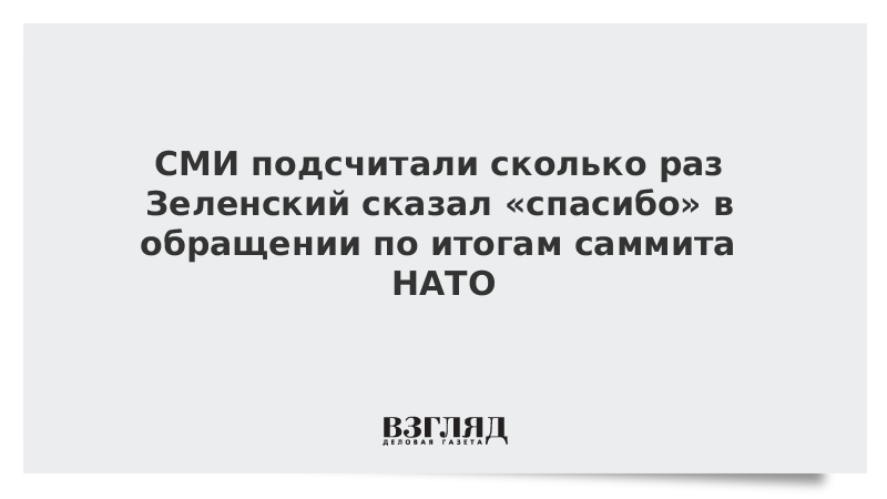 Президент Украины Владимир Зеленский сказал слово «спасибо» 47 раз за восемь минут своего обращения после саммита НАТО.