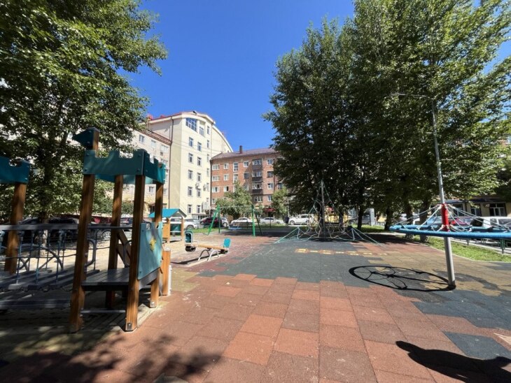 – Проделана огромная работа: проложены новые проезды, оформлены тротуары, по периметру детской площадки установлено ограждение. На территории установлена детская площадка с травмобезопасным покрытием и оригинальными МАФами: паутинка, качели-гнездо, канатная карусель, воркаут-зона. Строителям удалось сохранить зеленый уголок, что исторически сложился, благодаря чему в солнечные дни кроны высоких деревьев создают естественную тень и прохладу, – отметили в эссе конкурсанта представители УК.