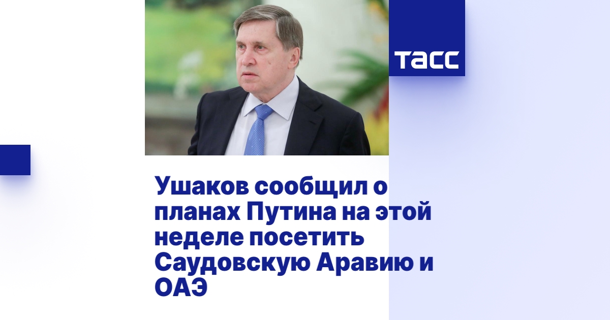 МОСКВА, 4 декабря. /ТАСС/. Президент РФ Владимир Путин на этой неделе совершит рабочий визит в ОАЭ и Саудовскую Аравию, проведет переговоры с наследным принцем Саудовской Аравии. Об этом сообщил телеграм-каналу Shot помощник президента Юрий Ушаков.