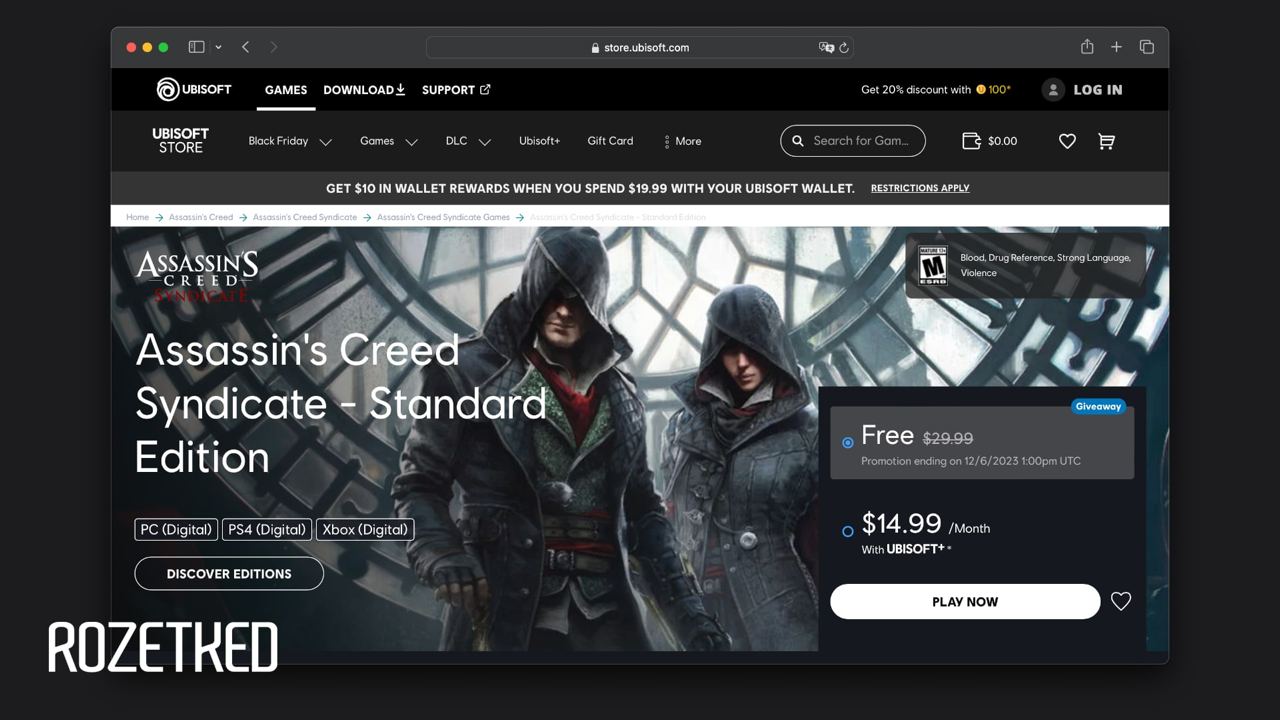 В Ubisoft Store можно бесплатно забрать Assassin's Creed Syndicate. Но придётся включить VPN — нидерландский, к примеру, работает.