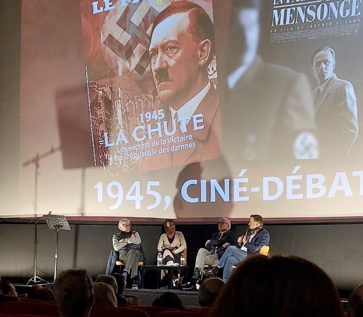 Après les acteurs, ce fut au tour des historiens de parler, montant sur scène pour une table ronde. Trois fines lames, auteurs de livres remarqués sur la période : Éric Branca, Henri-Christian Giraud et Jean-Christophe Buisson, directeur adjoint du Figaro Magazine. Branca et Buisson attaquèrent le sujet à la racine : le film commence trop tard. Rien sur les années 1920, rien sur le moment où Goebbels n’était pas encore ministre, mais seulement un jeune homme exalté qui écrivait dans son journal que Hitler était « l’instrument naturel et créatif d’un destin déterminé par Dieu ». Ce n’est pas rien, c’est même là que tout s’invente. Le film, par ailleurs bien ficelé, nous montre une fabrique déjà lancée, sans les plans de montage. Giraud embraya sur la géopolitique de la Seconde Guerre mondiale, où tous les intervenants firent preuve d’une instructive hauteur de vue : Staline n’était-il pas le grand vainqueur, les autres chefs d’État morts ou remplacés dès la signature de la paix ? Pourquoi Hitler s’était-il entêté et avait-il ouvert lui-même un second front qui le perdrait ? On aurait pu habiller nos intervenants de gros manteaux et se croire dans le patio du palais de Yalta avec ses trois grands hommes en négociations, n’était la présence de notre directrice adjointe Isabelle Schmitz en fin et pertinent maître de cérémonie, qui amena le débat sur la poursuite de la mystification politique post 1945 : c’est le communisme qui reprit le flambeau en la matière, avec, entre autres pratiques, le culte de la personnalité et l’étouffement de la vérité. Un antifascisme devenu lui-même totalitarisme.