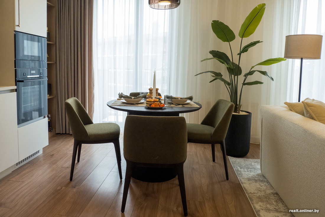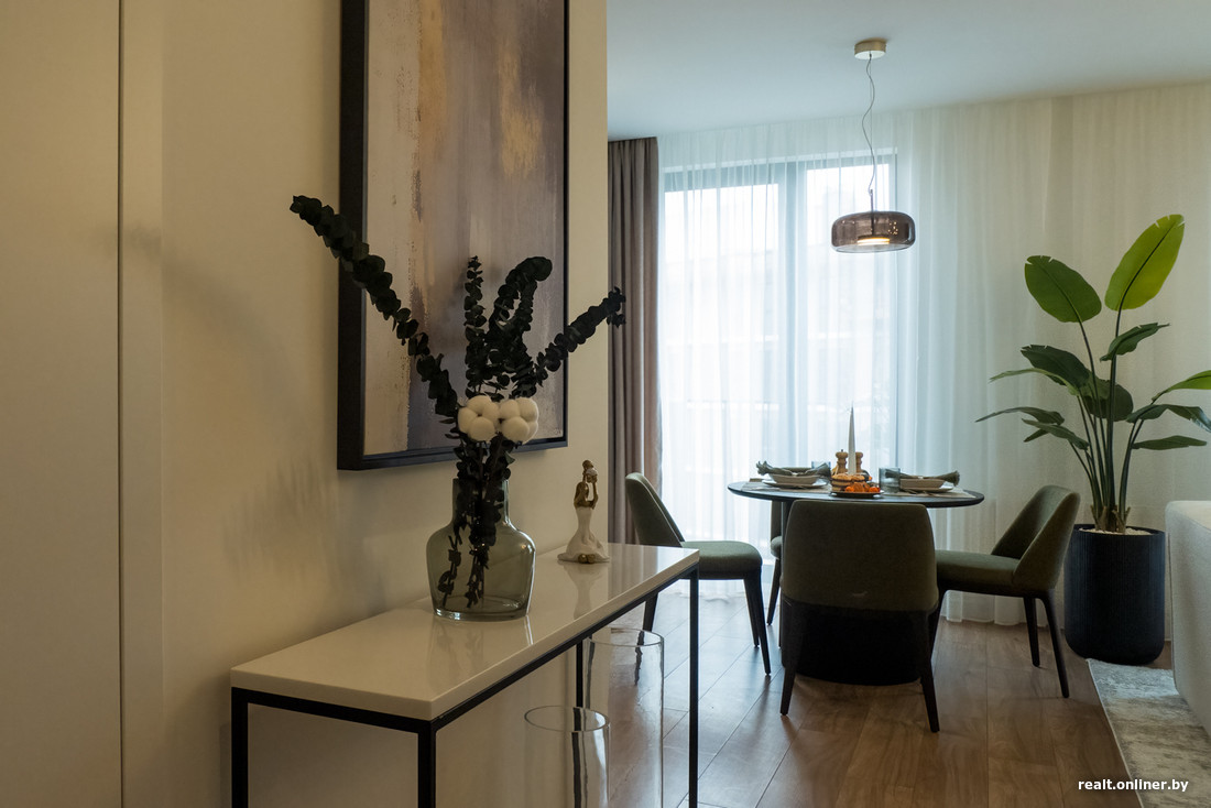 При отделке жилья в «Северном Береге» дизайнеры выбрали универсальную, спокойную палитру оттенков. Это беспроигрышный вариант, который потом при желании можно разбавить любыми яркими акцентами. Чтобы наглядно продемонстрировать такой интерьер в деле, застройщик организовал шоурум. В готовой евротрешке можно оценить, как заиграет типовая отделка в окружении мебели и других предметов интерьера.