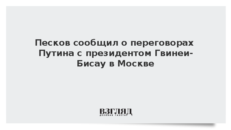 Как писала газета ВЗГЛЯД, президент России проведет встречу с президентом Гвинеи-Бисау Умару Сисоку Эмбало в Кремле для обсуждения сотрудничества и международных вопросов. Газета ВЗГЛЯД сообщала, что ранее президенты обсудили по телефону расширение двустороннего сотрудничества, включая инвестиции и гуманитарные проекты.