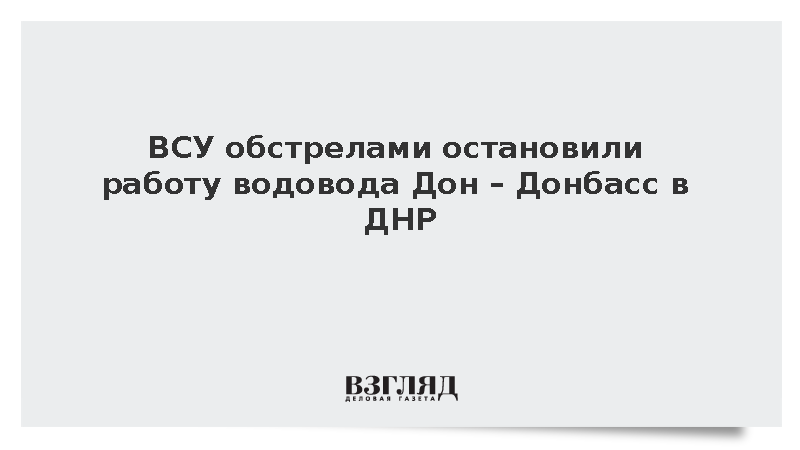 В результате обстрелов ВСУ объектов критической инфраструктуры ДНР и ЛНР приостановлена работа водовода Дон – Донбасс, что вызвало перебои в водоснабжении регионов, сообщил Минстрой ДНР.
