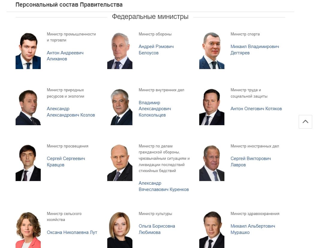 Информация о новых членах правительства РФ обновилась на его сайте.