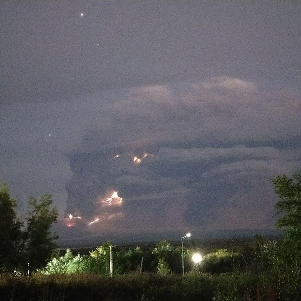 Очевидцы сообщают: столб пепла поднялся уже на восемь километров, а в небе то и дело сверкают пугающие молнии. «Началось извержение вулкана Шивелуч. Непрерывные электростатические разряды высокой энергии. Выдавливание лавы», — охарактеризовали извержение ученые из Института вулканологии и сейсмологии ДВО РАН.