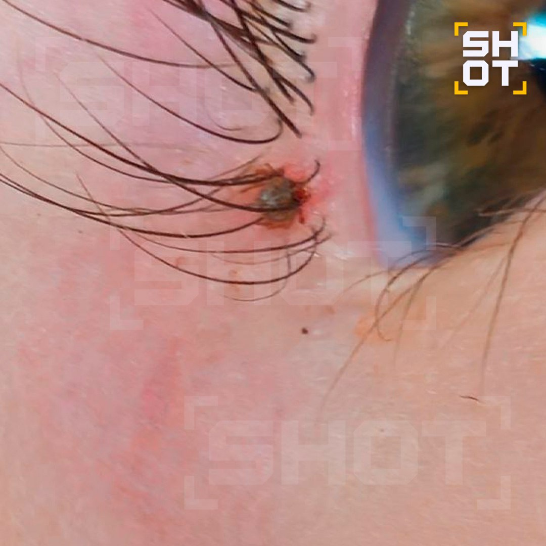 На следующее утро с жуткими болями в шее, ухе, виске и в плече проснулась мать ребёнка. У женщины заболела голова, её бросало то в холод, то в жар. Муж на зуме через камеру телефона увидел торчащие из кожи мелкие лапки. Ночью клещи покусали обоих детей — парня рядом с глазом, девочку — в висок.