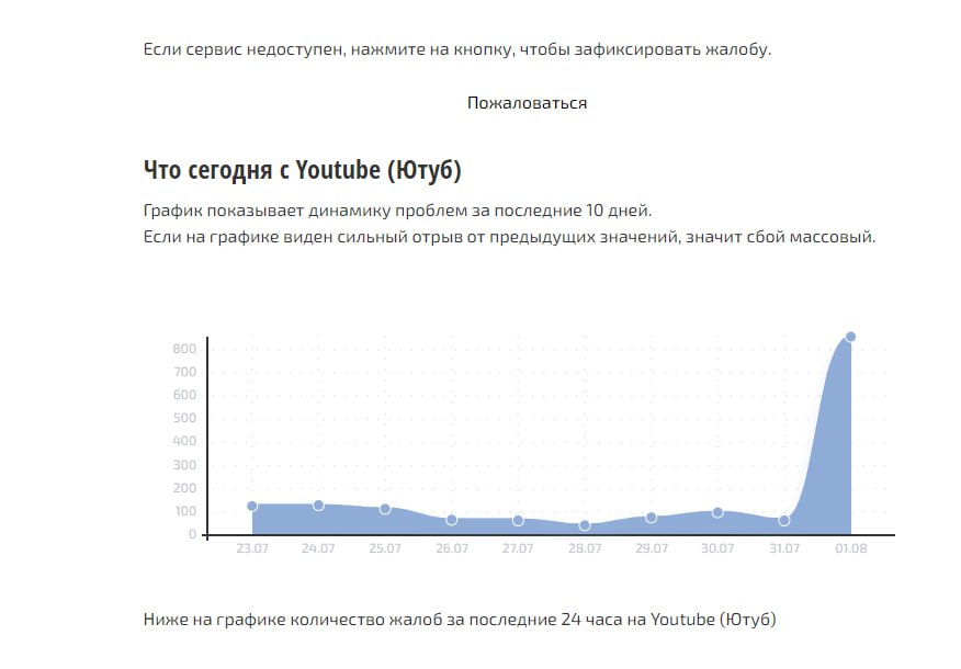 В России с ночи фиксируются сбои в работе YouTube: больше всего жалоб на состояние видеохостинга поступает из Москвы, Петербурга, Краснодарского края и Новосибирской области.
