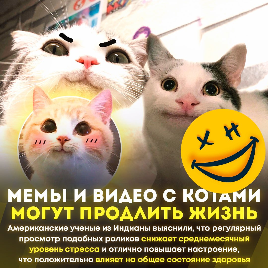МЕМЫ С КОТИКАМИ ПРОДЛЕВАЮТ ЖИЗНЬ! Об этом сообщил американский телеканал NBS News 🥰