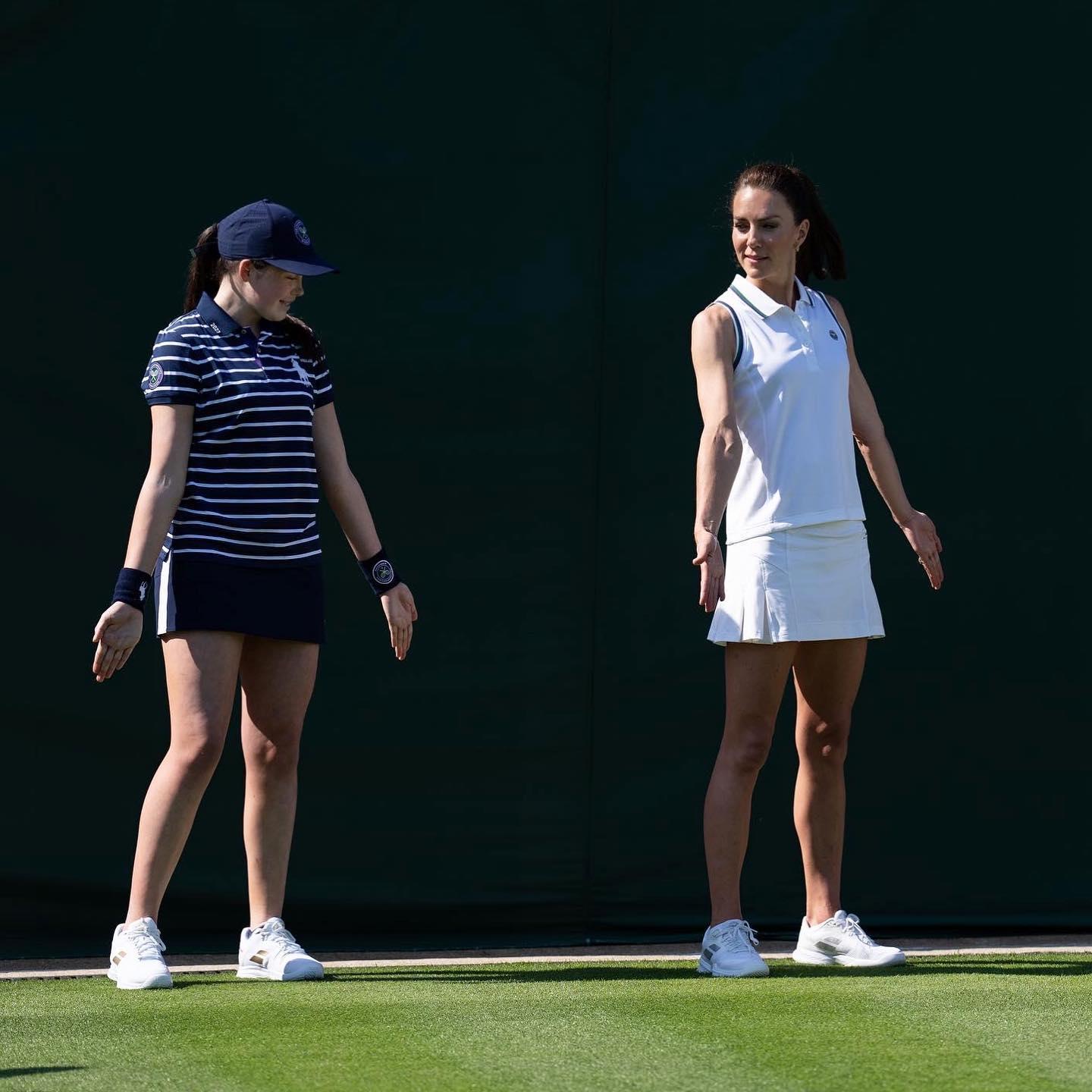 На мероприятии Кейт появилась в полностью соответствующем случаю образе. Принцесса Уэльская подобрала спортивную одежду с символикой Уимблдона. Она надела короткую белую юбку, сделанную дизайнером Стеллой Маккартни в коллаборации с Adidas, стоимостью 50 фунтов стерлингов (5 355 рублей). Расклешенная мини-юбка позволила Кейт продемонстрировать ее великолепную физическую форму и стройные ноги.