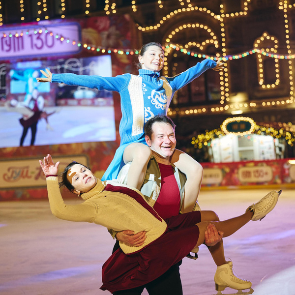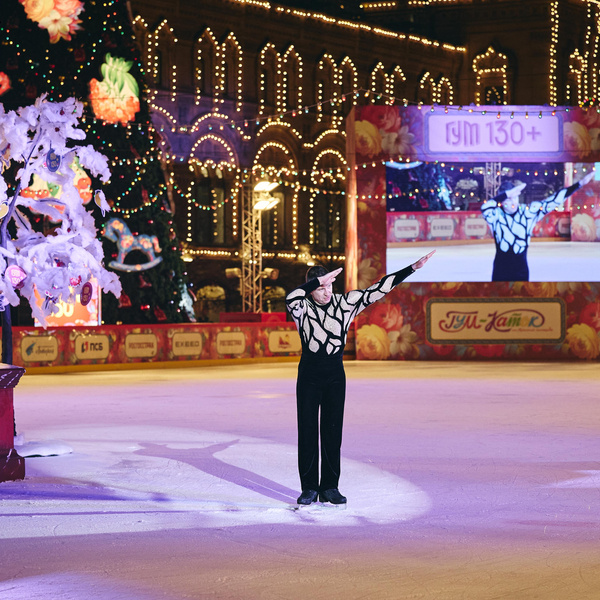 Историю Верхних торговых рядов, ставших позднее привычным нам ГУМом, на льду воссоздали в большое театрализованное представление — XIX век сменяется XX-ым, а вместе с этим появляется и знаменитый фонтан, фирменное мороженое, а позднее — всеми любимый главный каток страны. На этом месте его задумывали еще 130 лет назад, но появился он лишь в 2006 году.