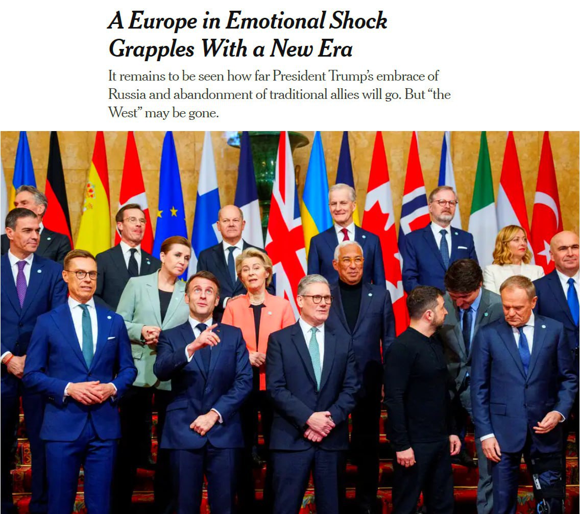 ЕС оказался в дрейфе, потрясённый радикальным изменением американской идеологии и крайне встревоженный задачей колоссального перевооружения, добавила газета.