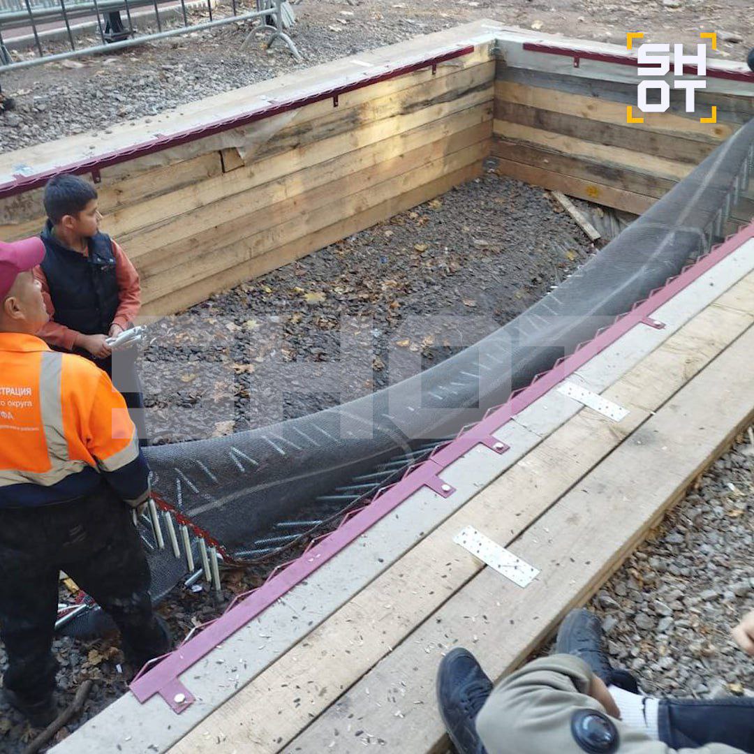 Батут провалился под подростками на детской площадке в Уфе. Один из парней госпитализирован с переломами двух костей и сотрясением