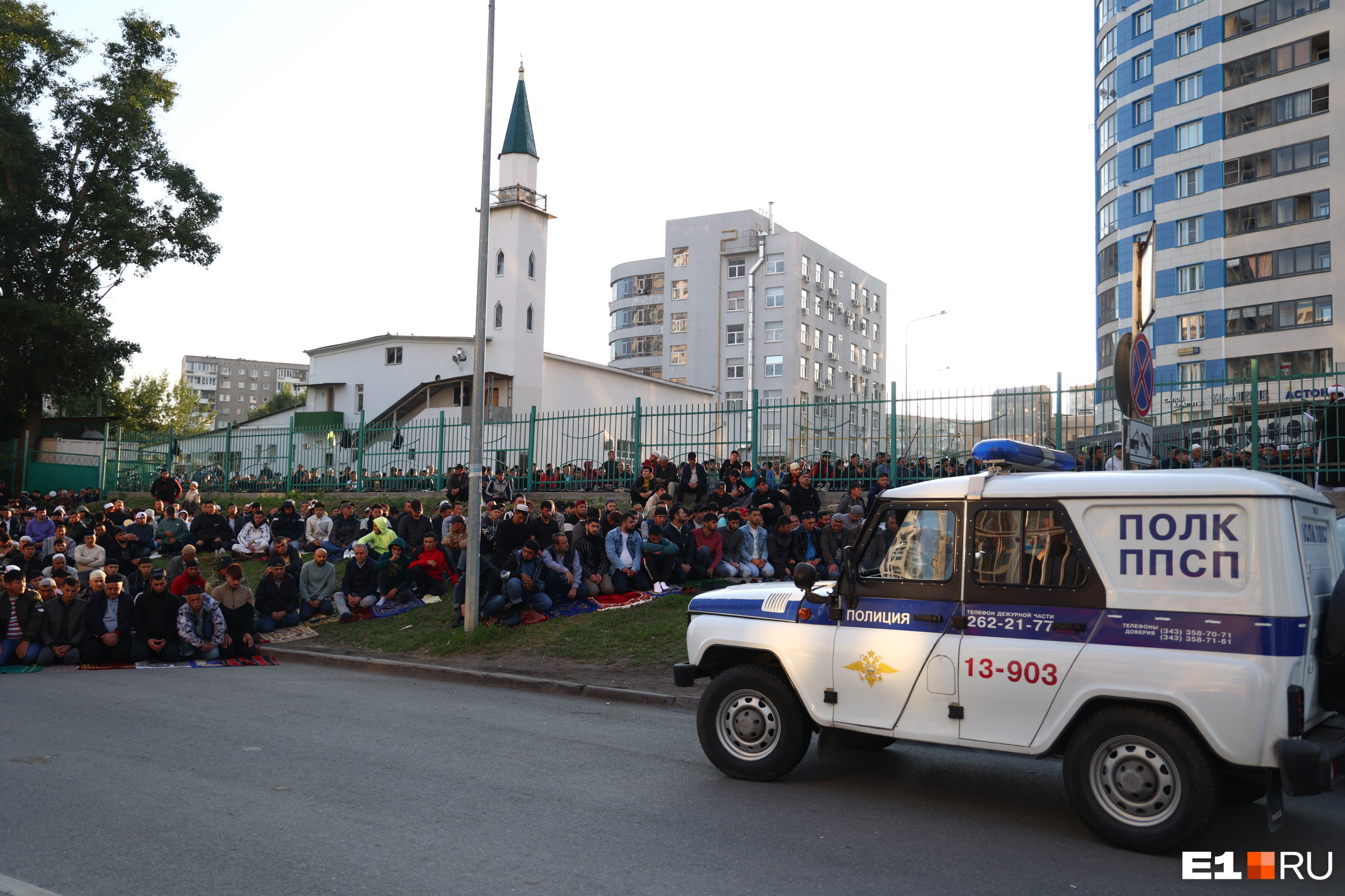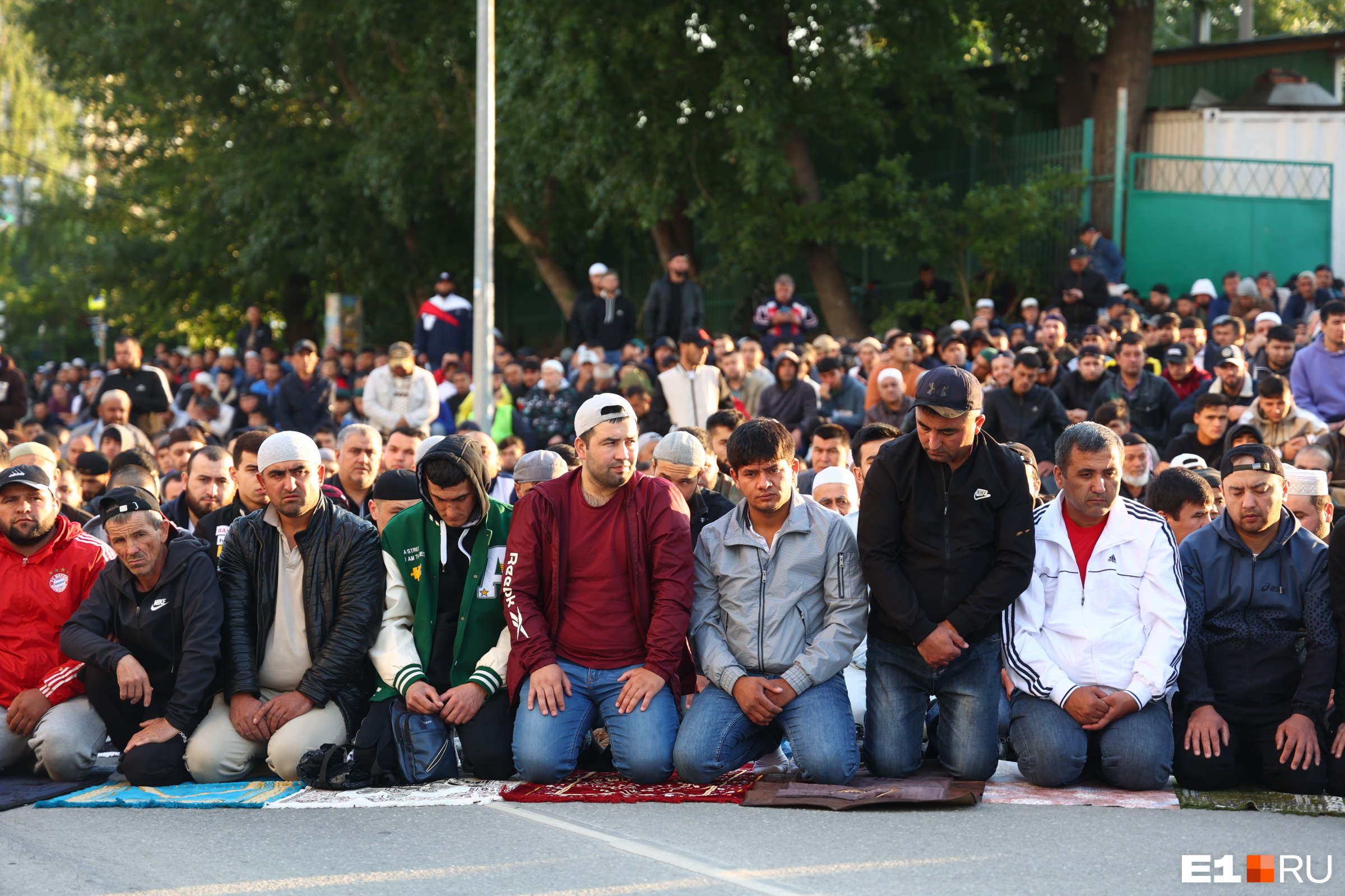 Тысячи мусульман собирались в центре Екатеринбурга рано утром 28 июня. Верующие отмечают Курбан-байрам — один из главных праздников в исламе. На утренний намаз в мечети Абу-Ханифа пришли около шести тысяч человек. Они заполнили храм изнутри, а после занимали территорию вокруг мечети.
