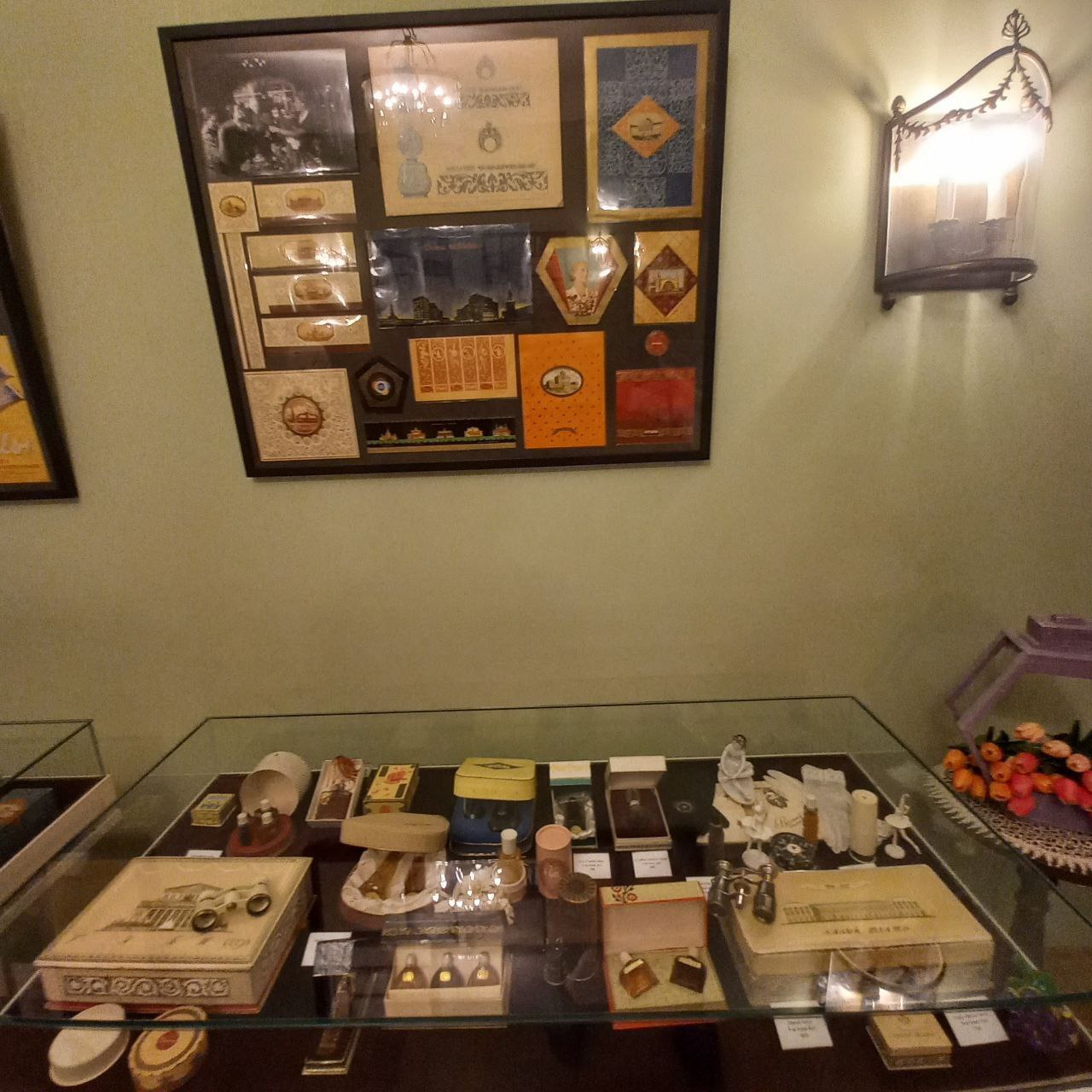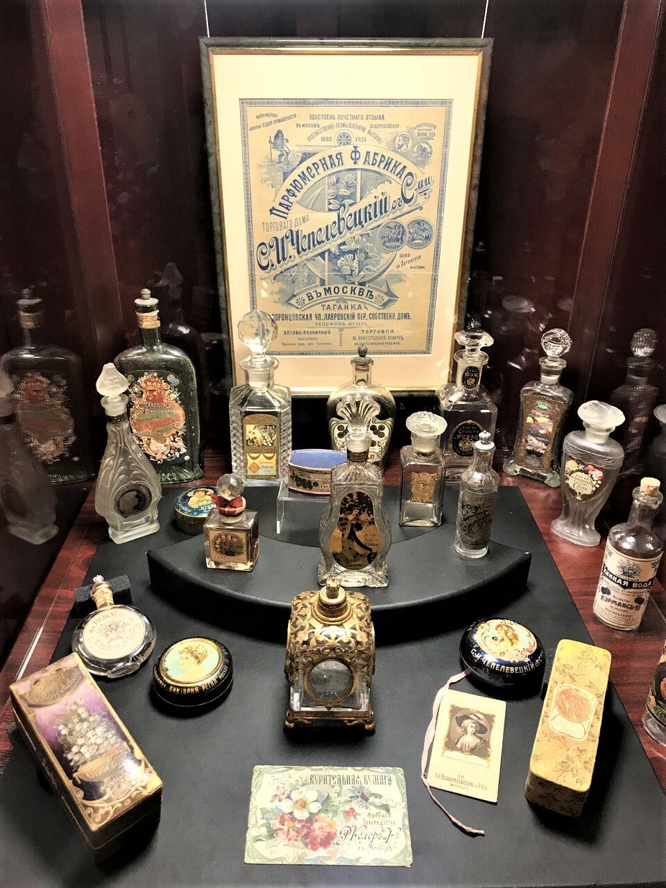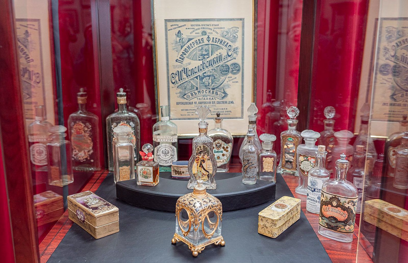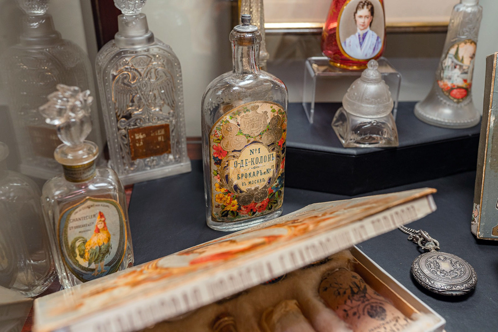Центром выставки являются шедевры русского парфюмерного искусства дореволюционного периода, такие как: знаменитый парфюмерный набор товарищества Брокар и Ко, вызвавший фурор при его продаже на открытии магазина на Ильинке; флакон из-под духов «Шапка Мономаха», выпущенных в честь 300-летия Дома Романовых (Т-во Брокар и Ко); знаменитый флакон в память 300-летия Дома Романовых из-под Одеколона Инокини Марфы (Т-во А. Сиу и Ко); изделия, посвященные гениям русской литературы (Л.Н. Толстому, А.П. Чехову и др.) и другие.