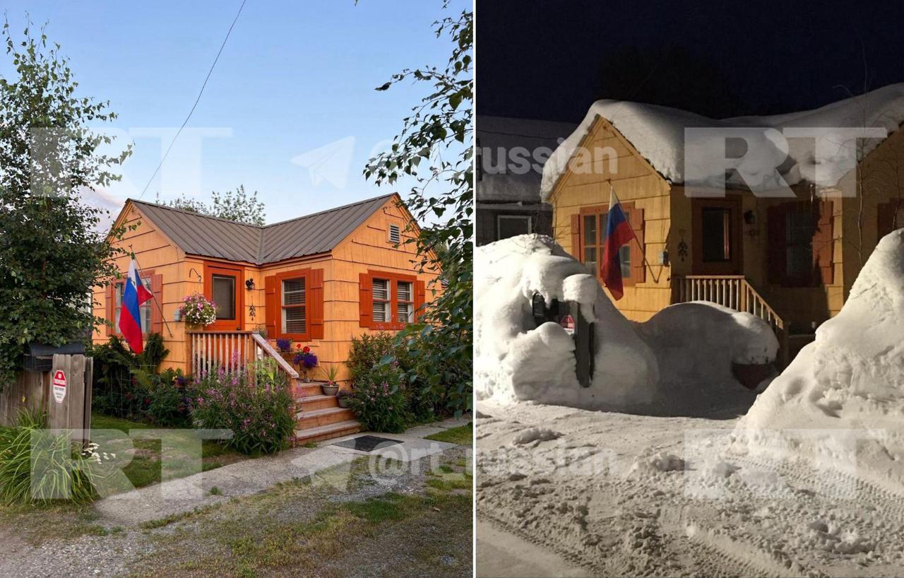 На фото — тот самый дом жителя Аляски, который вывесил триколор.