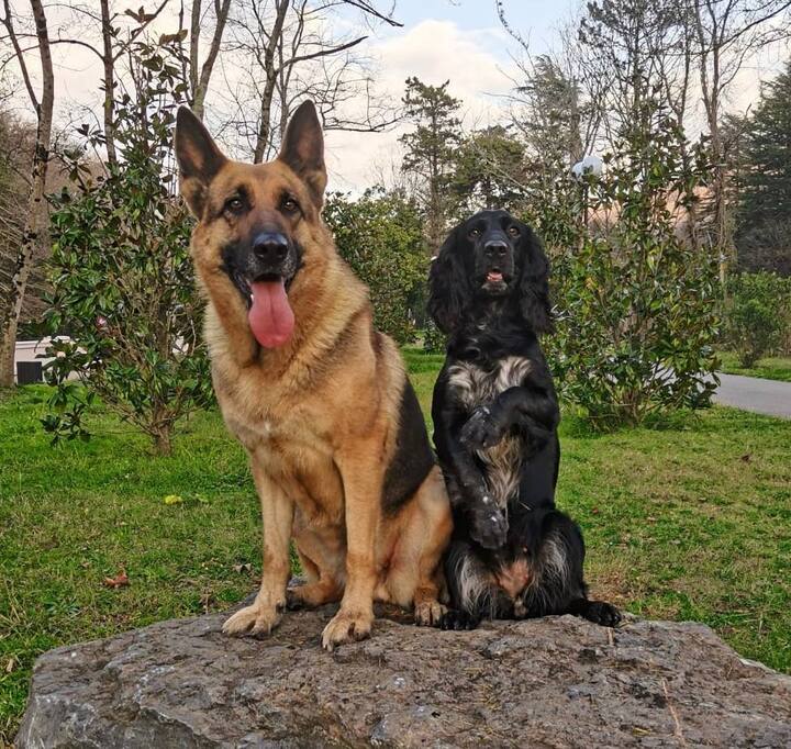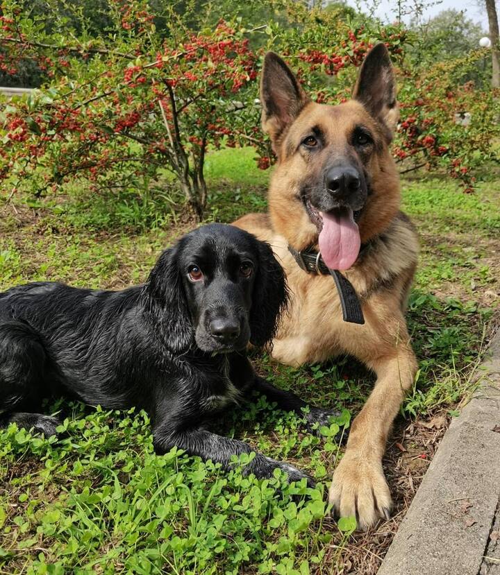 Когда маленькую Чару, которой было всего месяц, привезли в кинологический центр УВД, Альма сразу же взяла её под своё крыло. Опытная овчарка стала не только напарницей для спаниеля, но и заботливой «старшей сестрой». В свободное от службы время они обе с удовольствием купаются в горной реке.