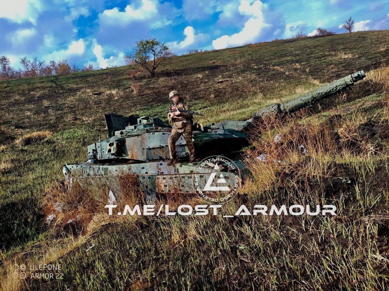 Наш боец на трофейном танке Stridsvagn 122 ВСУ (Strv.122A - шведская модификация Leopard 2A5) подбитом в районе н.п. Терны, ДНР в конце 2023-го.