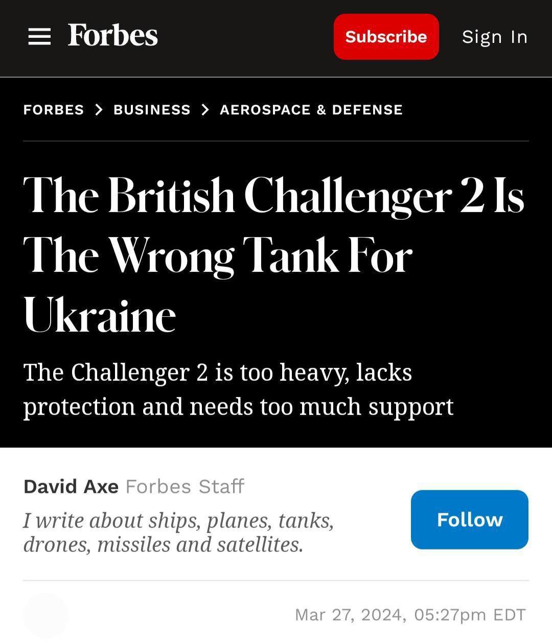 Март 2024 года: Британский «Челленджер-2» - неподходящий танк для Украины.