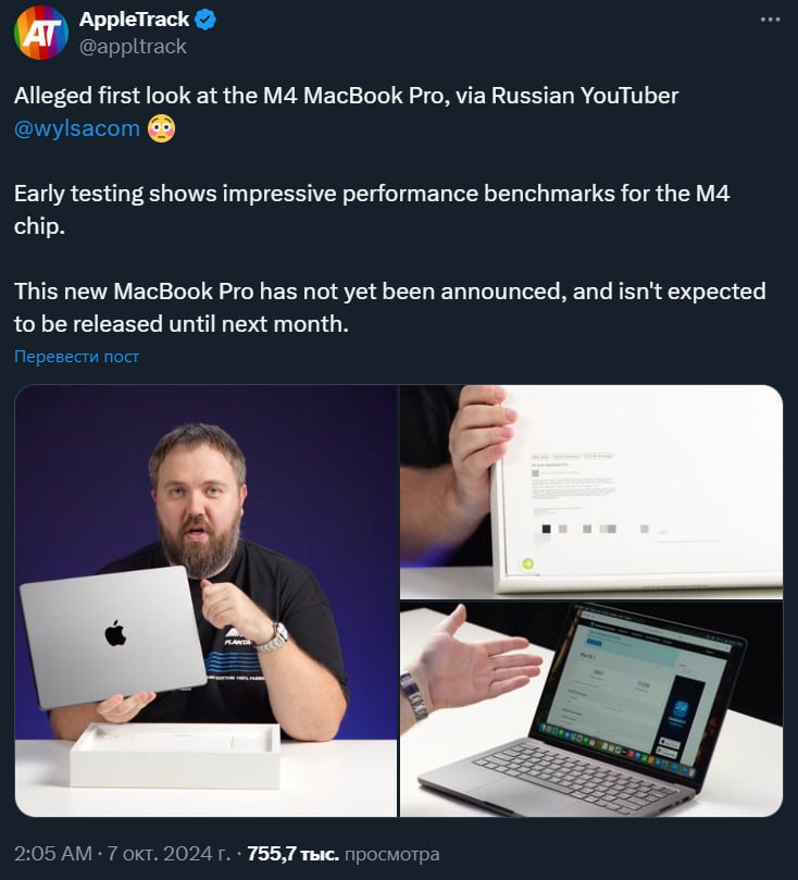 Технотвиттер в шоке от того, что Wylsacom снял обзор на ещё даже не анонсированный MacBook Pro на чипе М4.