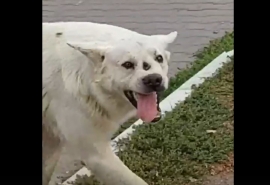 Именно эта собака, судя по всему, является лидером стаи, потому что она первая начала лаять в сторону оператора. Перешел ли пес от лая к действиям, неизвестно.