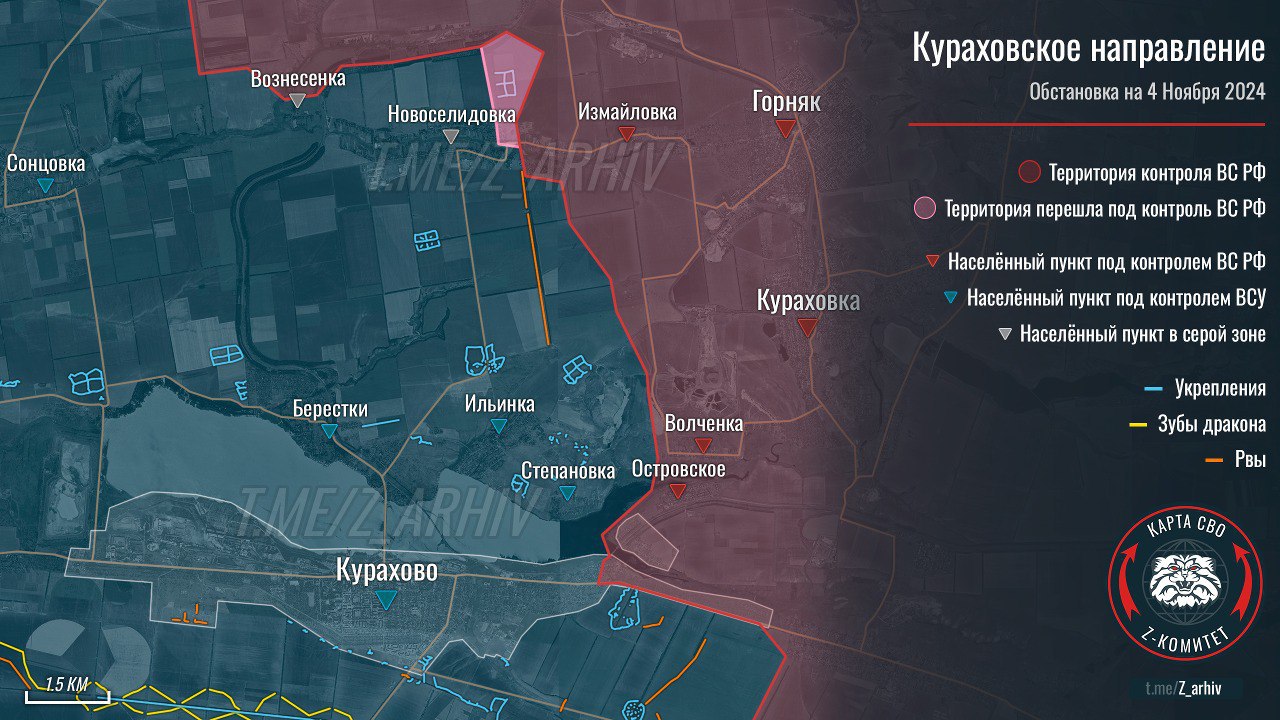 1. Штурмовые подразделения ВС РФ продвигаются в населённом пункте Новоселидовка.