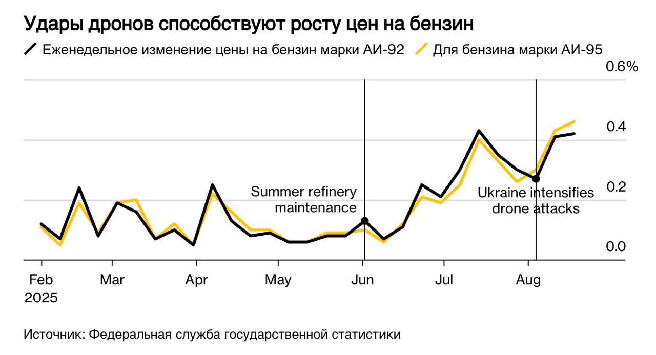 Однако полномасштабный топливный кризис еще далек, сказал в комментарии Bloomberg Сергей Вакуленко, бывший руководитель российской нефтяной компании, а ныне старший научный сотрудник Фонда Карнеги. Большинство НПЗ, пострадавших от беспилотников, продолжают работать, хотя и с пониженной производительностью, а другие заводы могут перенаправить потоки в регионы, где возникла нехватка топлива.