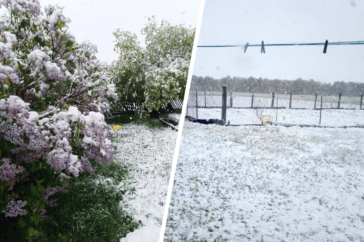 Баганский и Карасукский районы Новосибирской области завалило снегом днем 25 мая. Кадры снежного одеяла опубликовали в телеграм-канале «АСТ-54 Black».