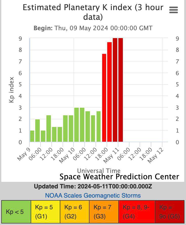 Этой ночью мощность магнитной бури приблизилась к уровню G5 впервые с 2005 года. При таком значении на планете могут разрушаться энергетические системы. Особенно трудно приходится космическим аппаратам — они испытывают проблемы с ориентацией и со спутниковой связью.