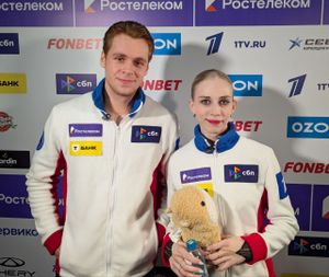 Еще один мило-романтический момент случился во время интервью пары бронзовых призеров ЧР — 25 Натальи Хабибуллиной и Ильи Княжука. За ответами фигуристов внимательно наблюдал хореограф Рамиль Мехдиев.