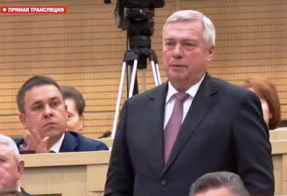 Вчера на пленарном заседании верхней палаты российского парламента председатель Совфеда Валентина Матвиенко представила В. Голубева и сообщила, что удостоверение и нагрудный знак сенатора он получит позже. А 147 сенаторов сопроводили официальное представление В. Голубева аплодисментами.