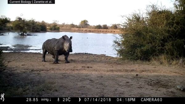 За время исследования пять южных белых носорогов, находящиеся под угрозой исчезновения, были убиты браконьерами в соседних заповедниках. На видеозаписях ученых носороги также в два раза быстрее убегали от голосов людей, чем от львиных.